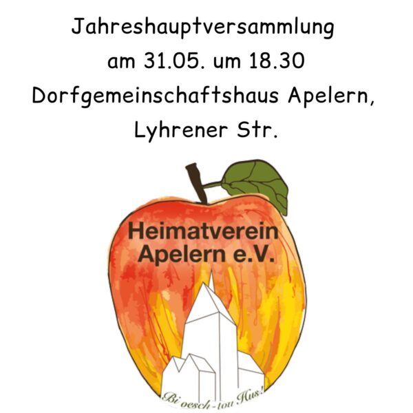 Der Heimatverein Apelern lädt zur JHV ein. Um Anmeldung bei den beiden Vorsitzenden wird gebeten. (Kontakt im Link) Änderungen zur Tagesordnung können noch bis zum 24.5. eingereicht werden. Alle Details zur Veranstaltung hier auf der Seite des Heimatvereins: https://www.heimatverein-apelern.de/…/jahreshauptversa…/ #zusammengehtmehr #zusammenhalt #igapelern #apelern #jahreshauptversammlung #einladung #gemeinsam #jhv #termine #vereinsleben #soldorf #lyhren #reinsdorf #gemeinschaft #kleinhegesdorf #großhegesdorf…
